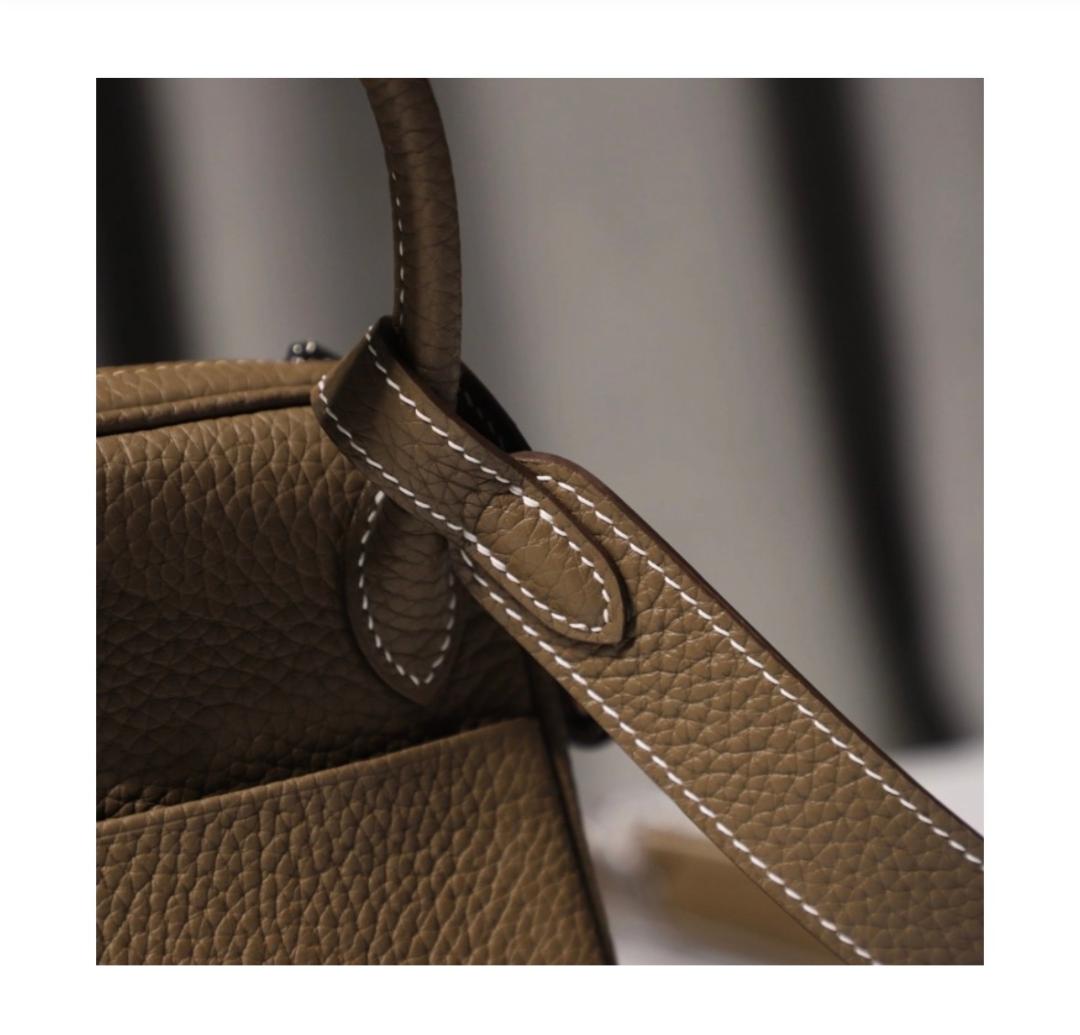 This is a beautiful mini lindy 20  bag with shoulder strap. Clemence  leather. In etoupe color  with palladium hardware to make the color even pop out more. Bag will be shipped and delivered with box and all other accessories. Quality bag that you don’t have to break the bank for. All Bags are Final sale. No Returns