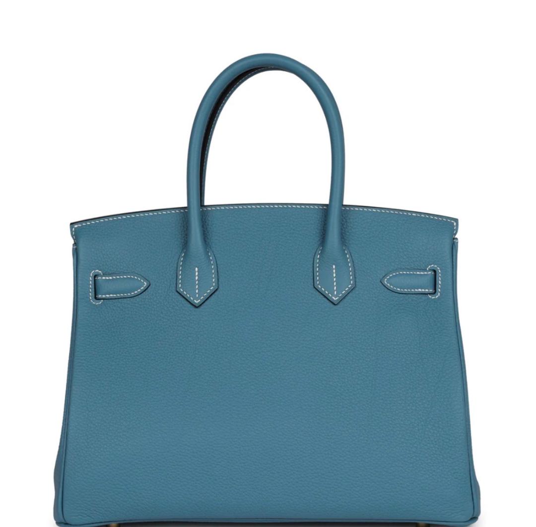 Gorgeous B30 Blue jean togo leather handbag with gold hardware contrast stitching. This is what quality looks like. No breaking the bank for a durable quality bag. Bag will come with all accessories including box. All Bags are Final sale. No returns or Refunds. Customer satisfaction is guaranteed.