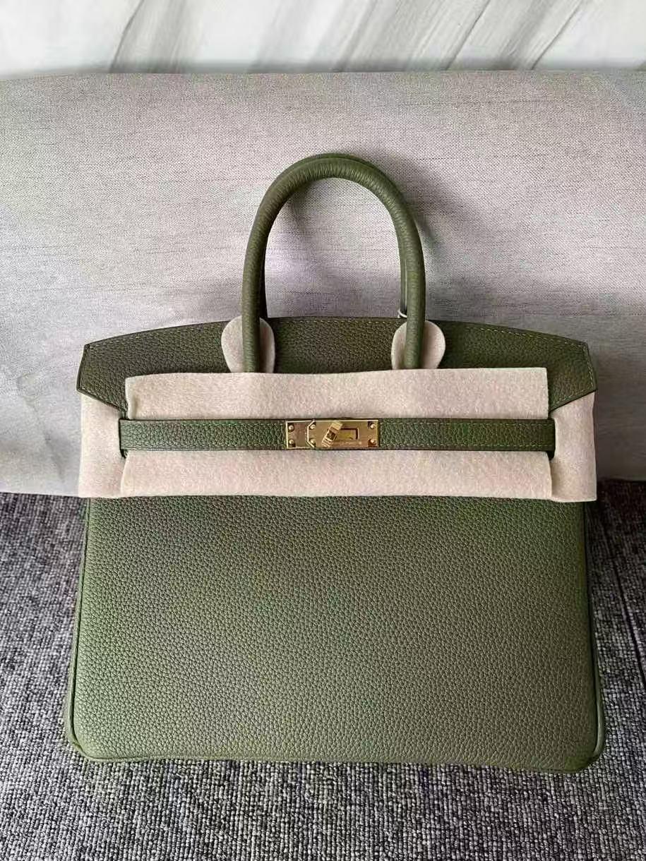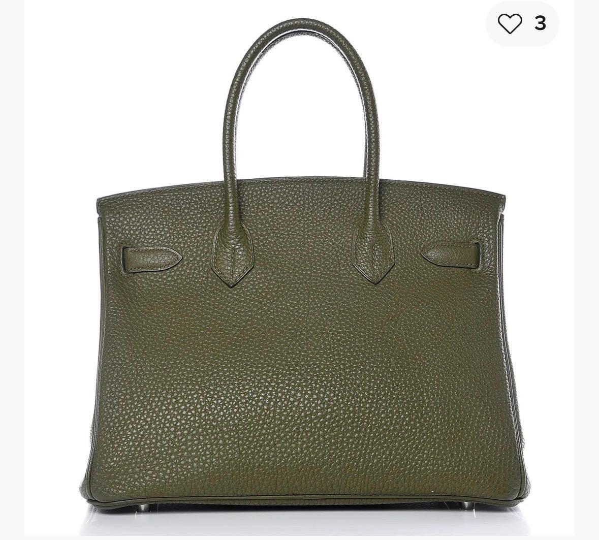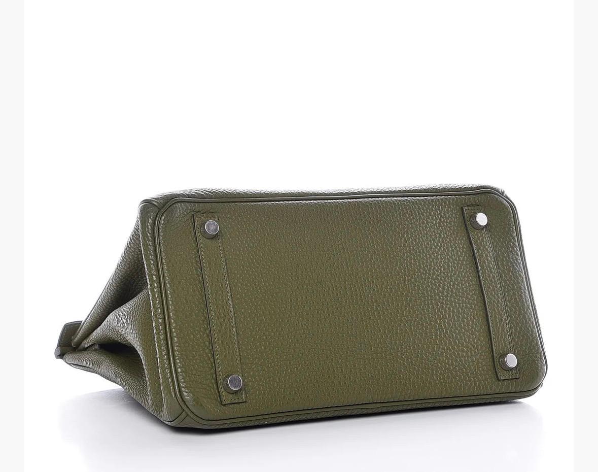 Gorgeous B30 Olive Green  togo leather handbag with palladium hardware.  This is what quality looks like. No breaking the bank for a durable quality bag. Bag will come with all accessories including box. All Bags are Final sale. No returns or Refunds. Customer satisfaction is guaranteed. ALSO AVAILABLE IN GOLD HARDWARE.